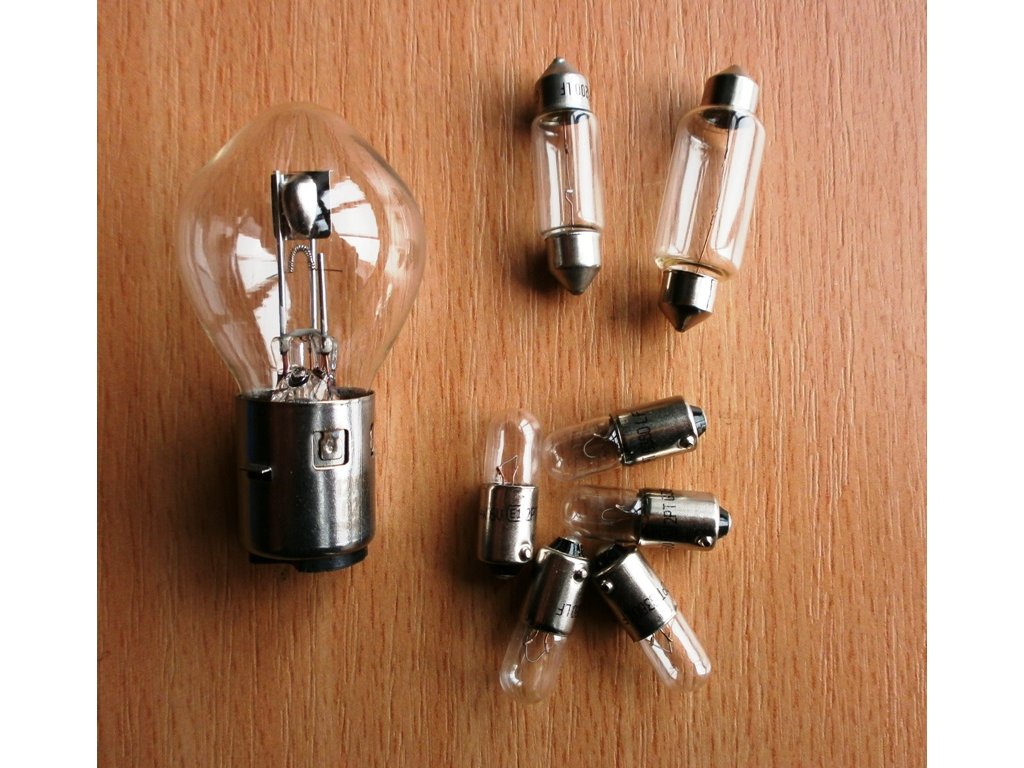 - 5x 12V/4W žárovky pro kontrolky a parkovací světlo, které zajišťují, že všechny důležité funkce vašeho motocyklu jsou správně osvětleny.