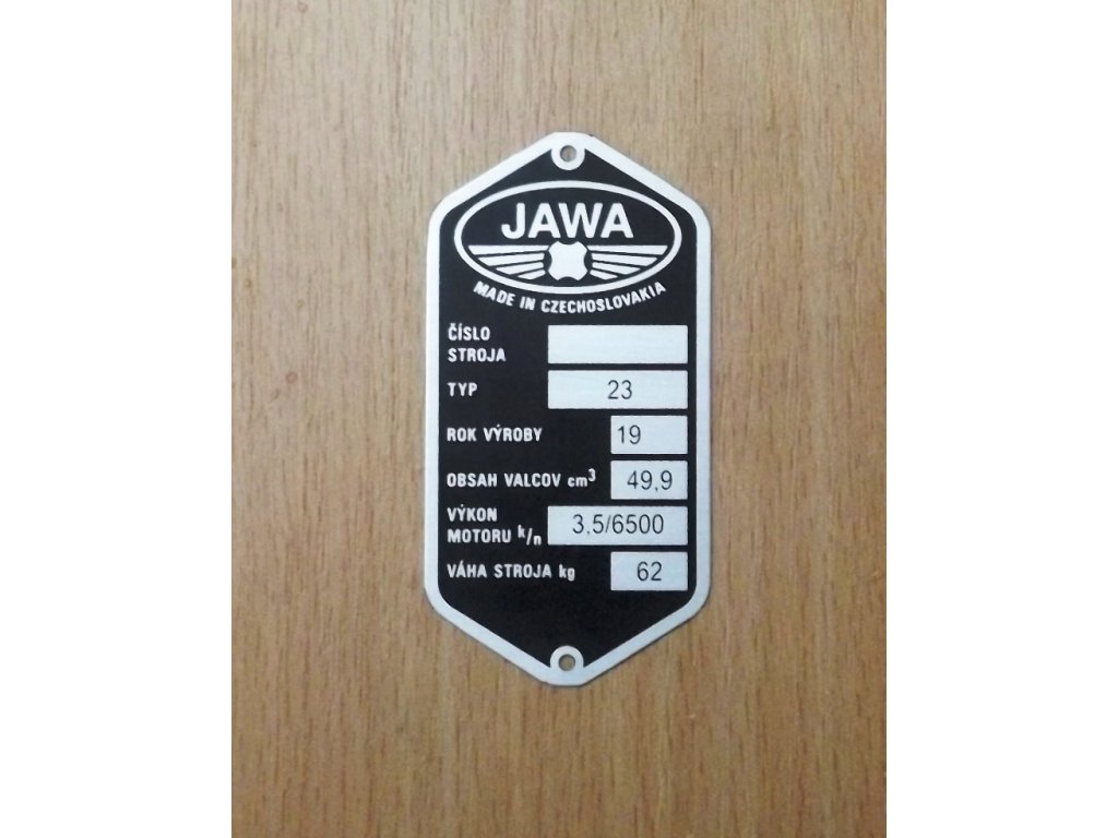 Výrobní typový štítek Jawa 50/23 Mustang