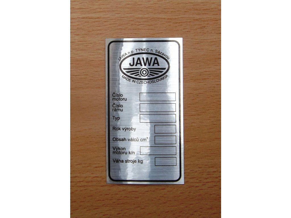 Výrobní typový štítek Jawa Bizon je nezbytným doplňkem pro každého majitele motocyklů Jawa 250/623 a Jawa 350/633, který si přeje zachovat autentičnost a historickou hodnotu svého stroje. Tento český výrobek je navržen s důrazem na precizní zpracování a dlouhou životnost, což z něj činí ideální volbu pro ty, kteří si cení kvality a detailu.