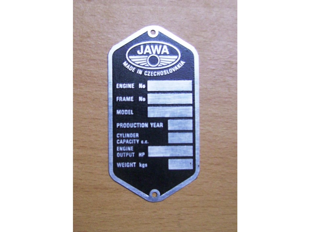 Výrobní typový štítek Jawa Panelka - AJ
