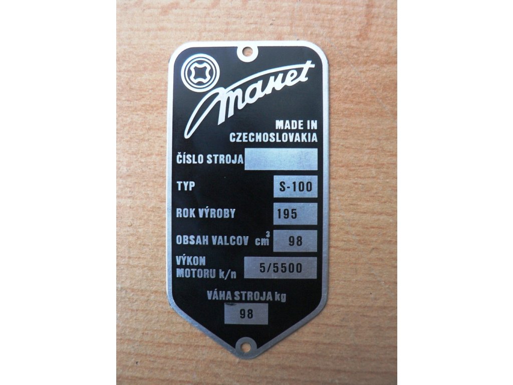 Výrobní typový štítek Tatran Manet 100