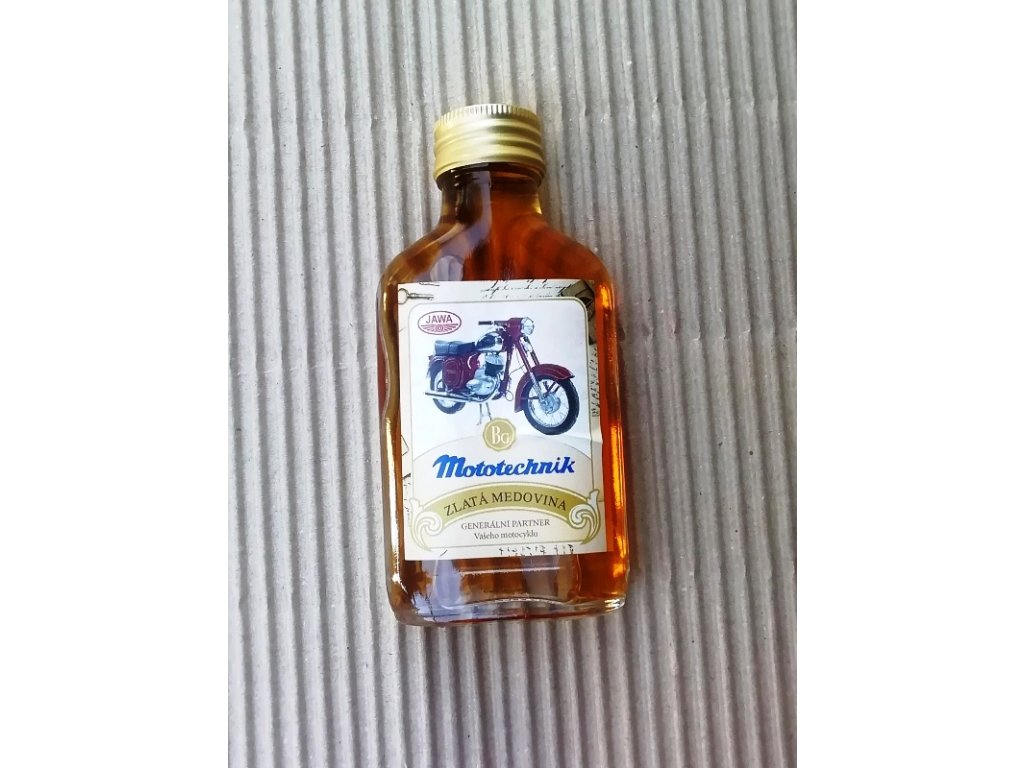 Zlatá medovina - Jawa 250 Panelka je unikátní produkt, který spojuje lásku k tradičním českým motocyklům a kvalitnímu medovému nápoji. Tato elegantní skleněná lahvička o objemu 100 ml je ozdobena motivem legendárního motocyklu Jawa 250 Panelka, což z ní činí nejen lahodný nápoj, ale i sběratelský kousek. Ideální pro milovníky klasických motorek, kteří ocení spojení tradice a jedinečného designu.